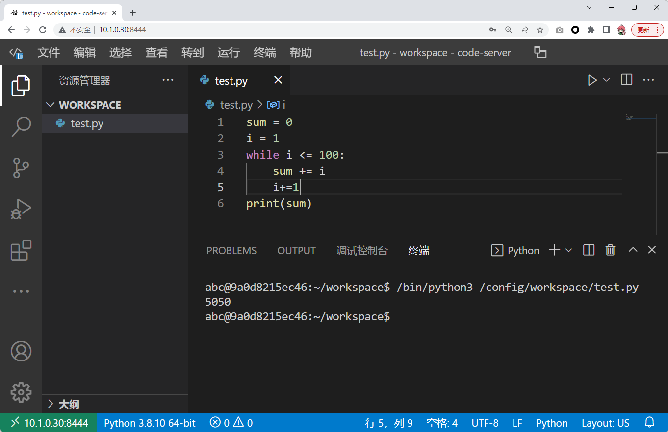 DEFAULT_WORKSPACE 是指定web 访问时默认的工作目录。PASSWORD 进入web 页面的密码。SUDO_PASSWORD 是容器内使用sudo 命令时需要的密码。(为了安全,默认账号并不是root 运行)