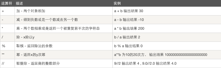 | * / % // | 乘,除,取模和取整除 |