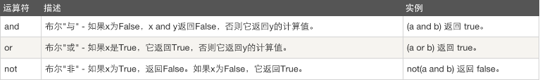 | not and or | 逻辑运算符 |