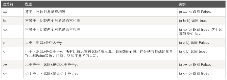 | 运算符 | 描述 |