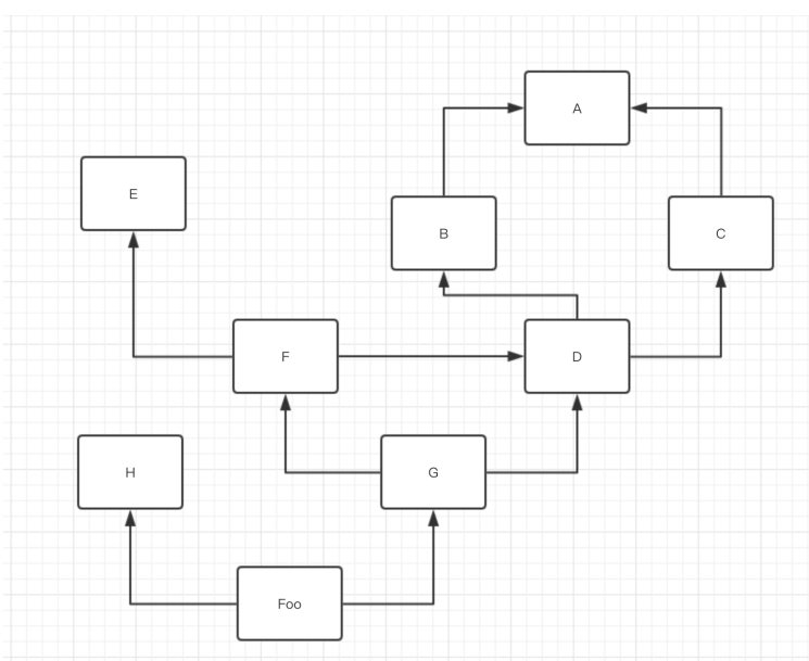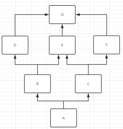 类的MRO(method resolution order): Foo-> H -> G -> F -> E -> D -> B -> A -> C.