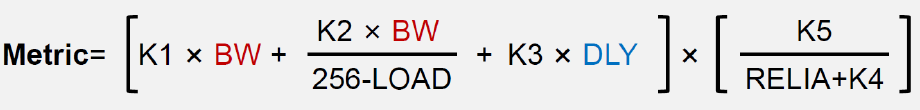 - 所以通常情况下,度量值=256×(10^7/最小带宽+累积延时/10)
