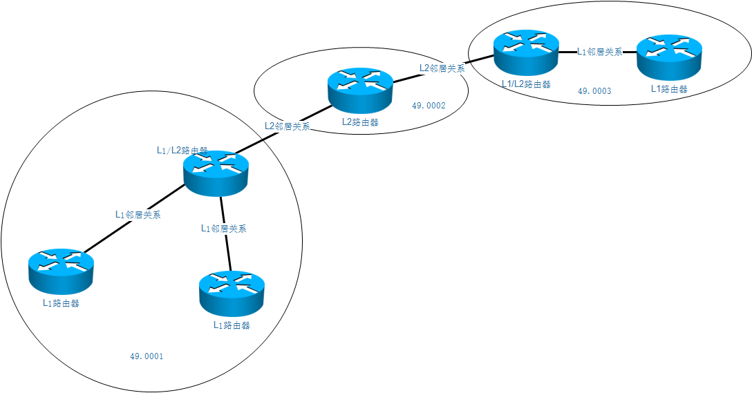 R2和R3其实不需要两个邻居关系,他们同属于49.0001区域,但是R2和R3都不能设置为L1路由器,因为它们还负责和其他区域相连,可以修改接口的角色