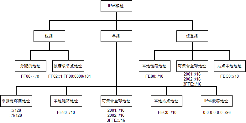 - 可聚合全局单播地址(Aggregatable global unicast address)