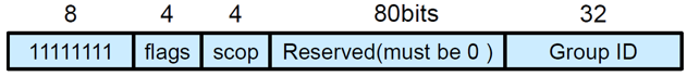- 该字段长度可以为112位,用来标识组播组,而112位最多可以生成2112个组ID