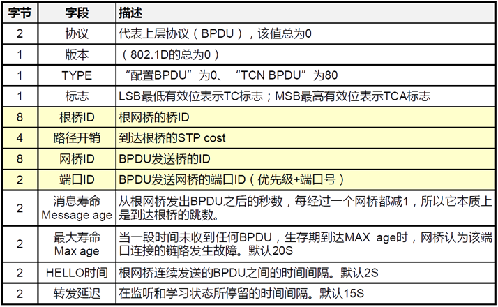 - 端口ID:端口优先级(1字节)+端口编号(端口在交换机上的序号)