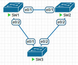 - Sw3会从e0/1 和e0/2都收到同一个根桥的BPDU,根据STP计算,将e0/2阻塞