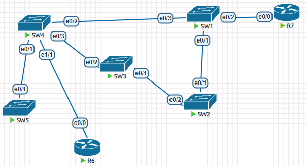 - Sw4在阻塞下联接口的时候,同时也发送了BPDU,然后Sw5收到了,由于Sw5没有下联接口,所以直接给Sw4确认无环路,然后Sw4放开e0/1接口,Sw5也立即将e0/1变为FWD