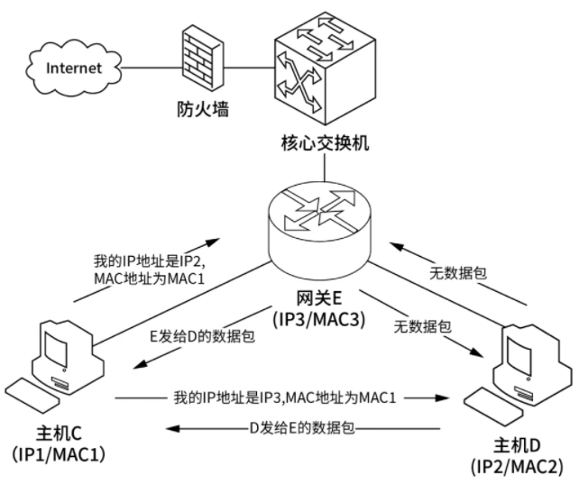 ARP 攻击就是通过伪造 IP 地址和 MAC 地址来实现 ARP 欺骗,通过在网络中制造大量的 ARP 通信量使网络阻塞,攻击者只要持续不断的发出伪造的 ARP 响应包就能更改目标主机 ARP 缓存中的 IP-MAC 条目,造成网络中断或中间人攻击,因此 ARP 攻击通常也被称作ARP欺骗。