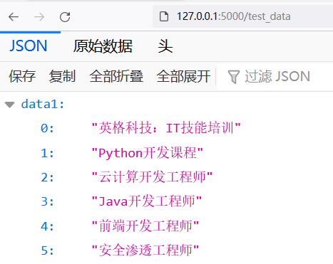 data1 = ['英格科技:IT技能培训','Python开发课程','云计算开发工程师','Java开发工程师','前端开发工程师','安全渗透工程师']