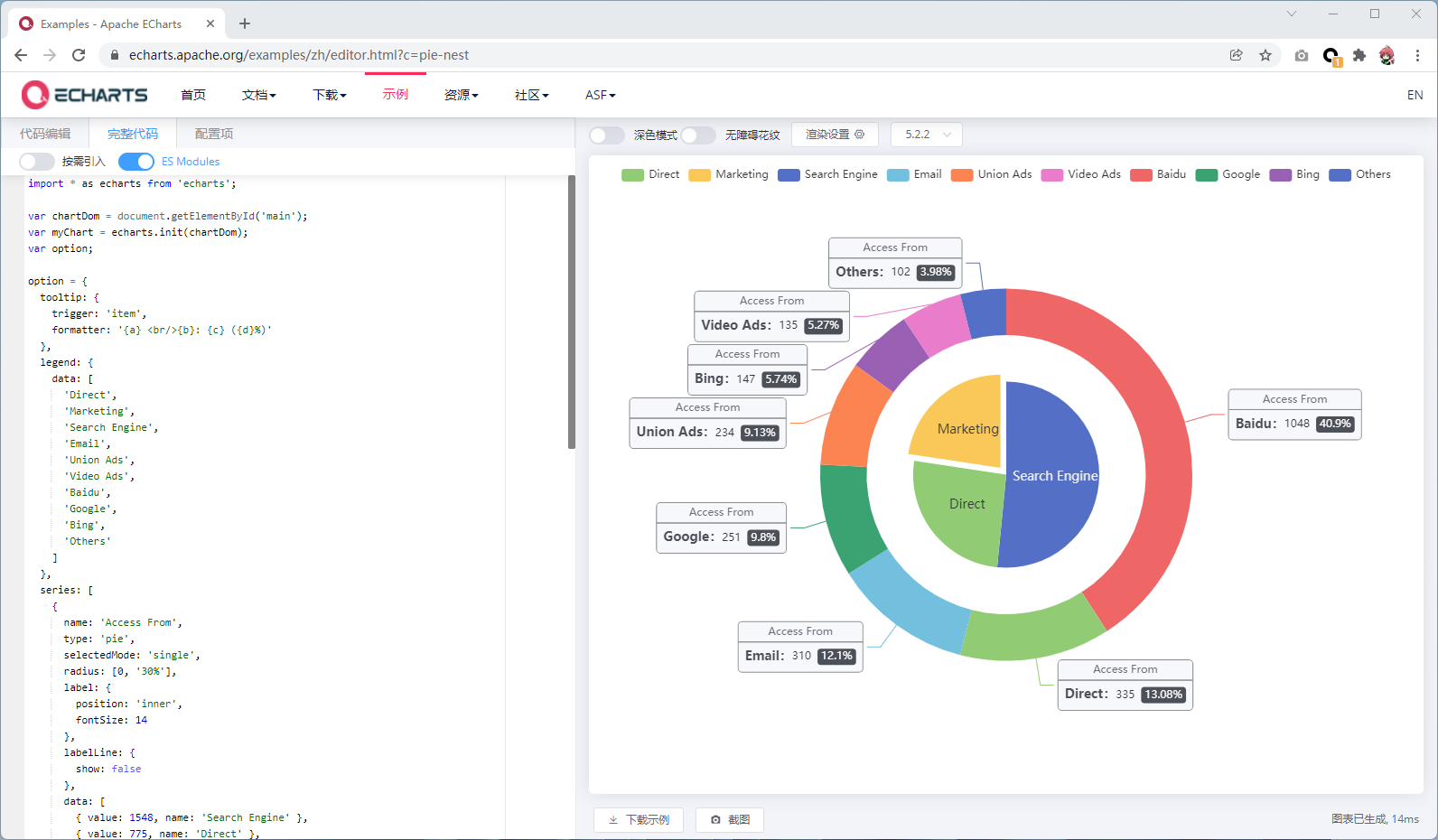 https://echarts.apache.org/examples/zh/editor.html?c=pie-nest