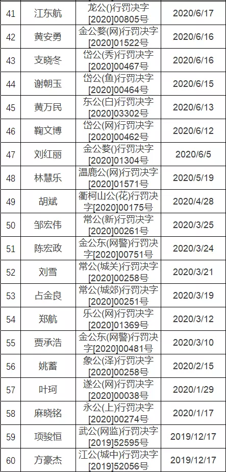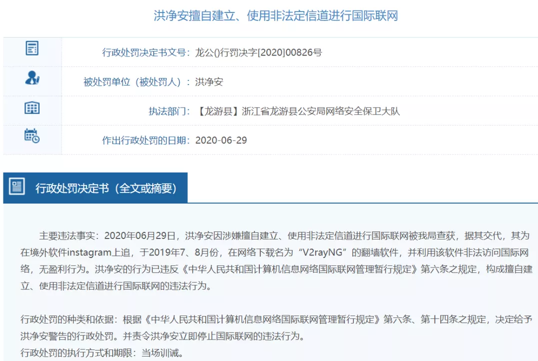 以下为浙江省“擅自建立、使用非法定信道进行国际联网”翻墙处罚案件列表