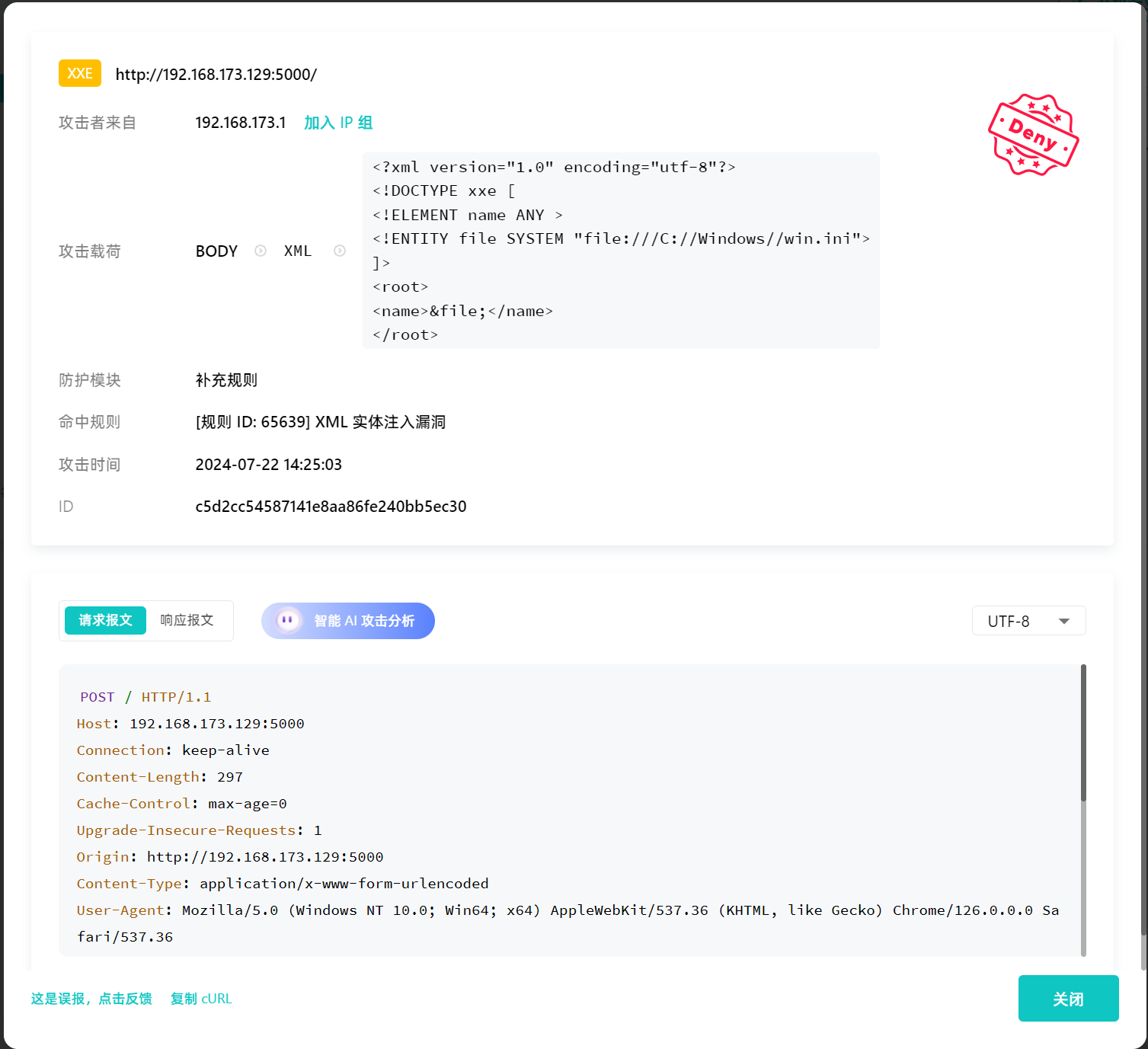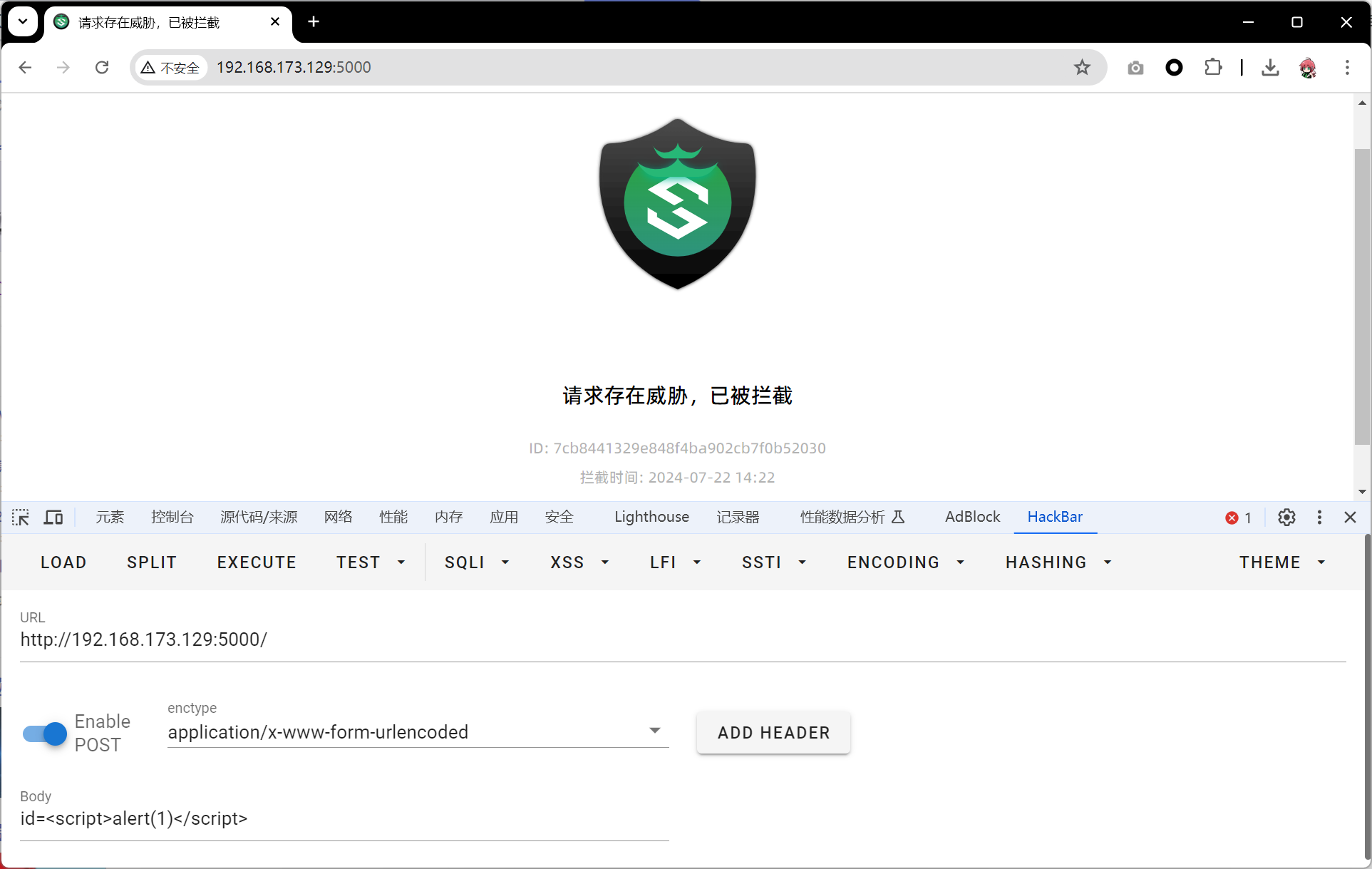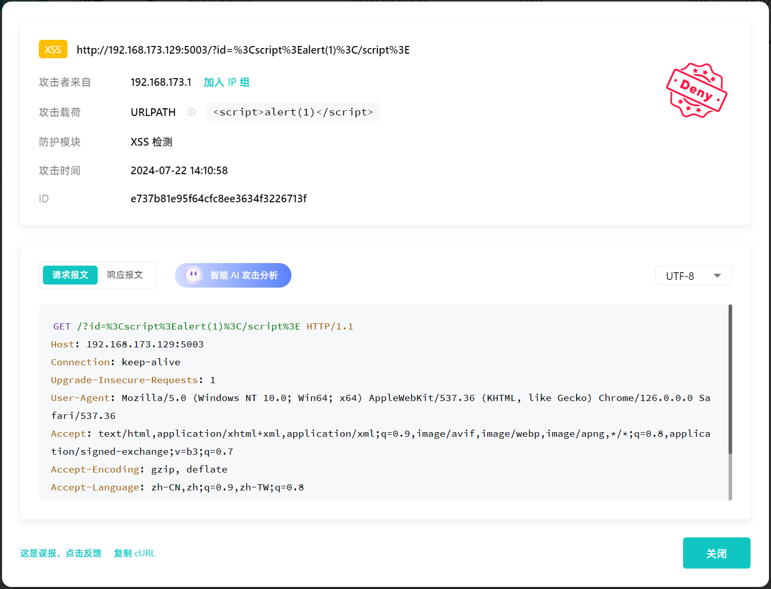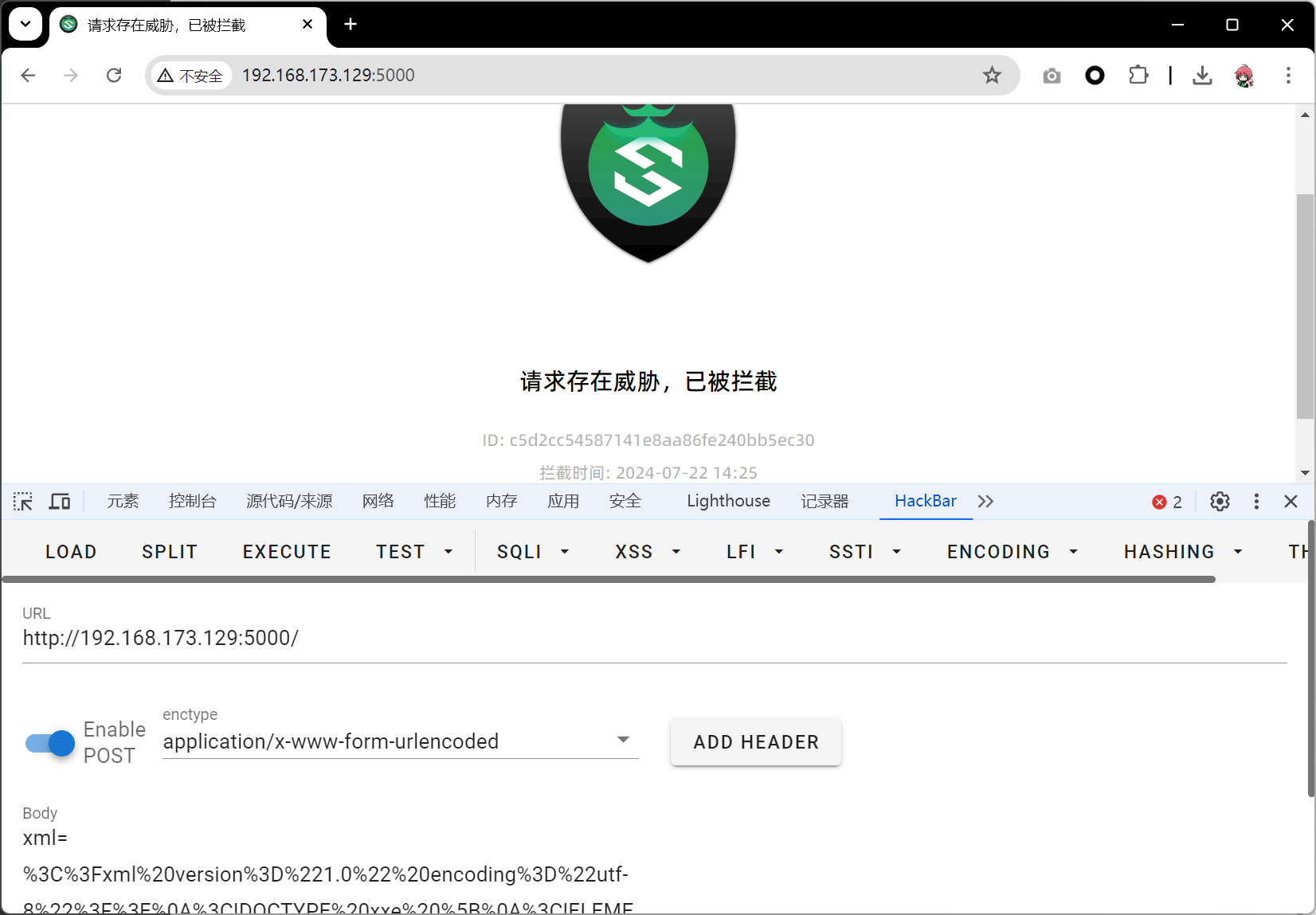 再次访问网页,带上关键字,可以看到触发过滤效果