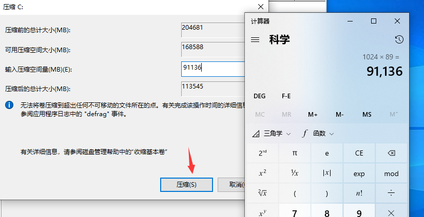 经过我的计算1GB=1024MB,我打算给D盘设置89G大小,这样C盘就是110G了