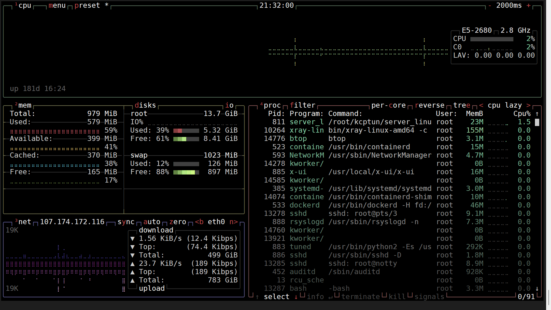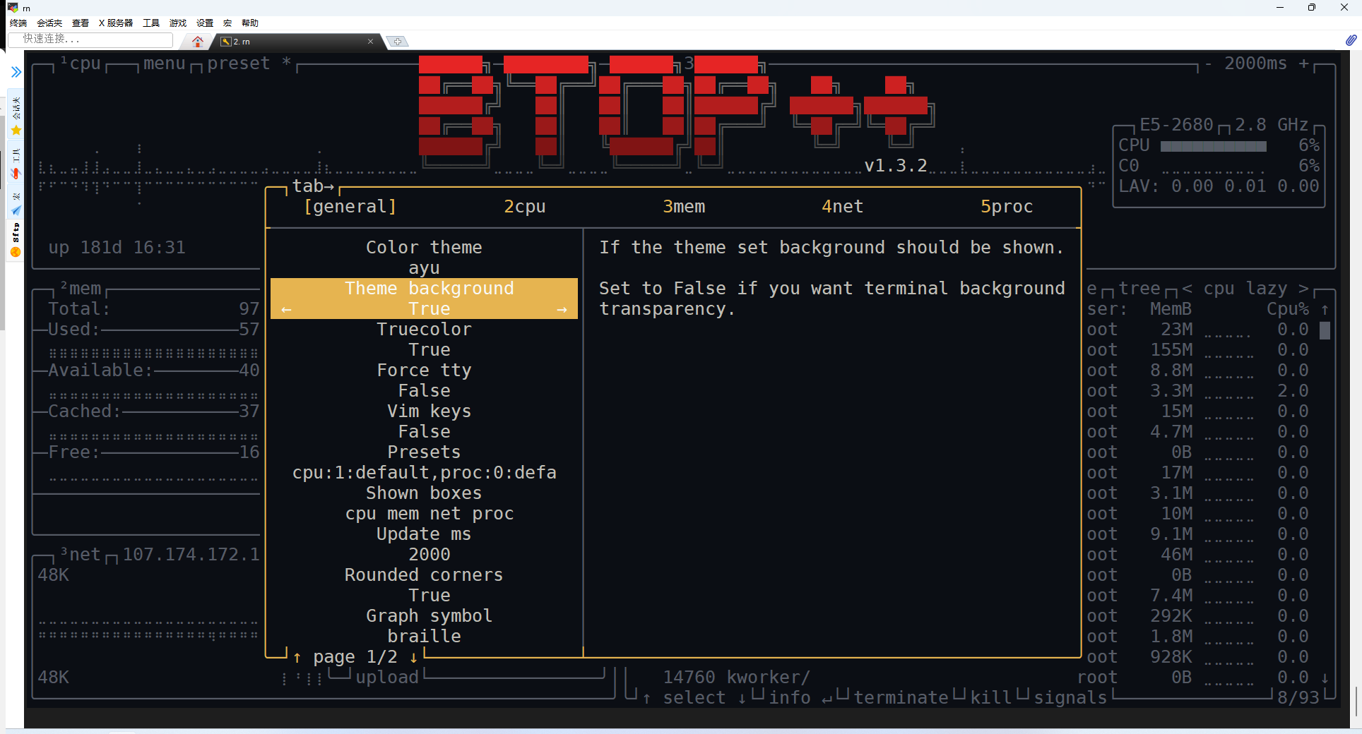 btop是一个界面美观的资源查看器,有丰富的功能选项,可视化的配置菜单。还是非常好的top平替工具。