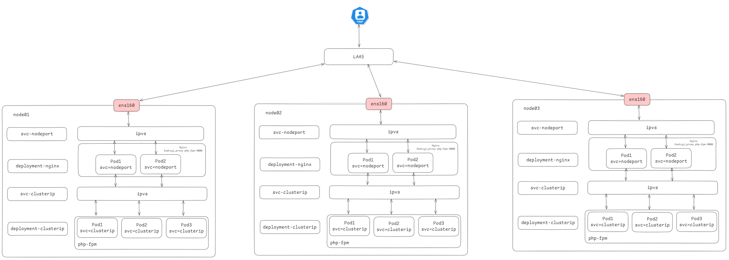 - NodePort:将Service通过指定的Node上的端口暴露给外部,通过此方法,就可以在集群外部访问服务